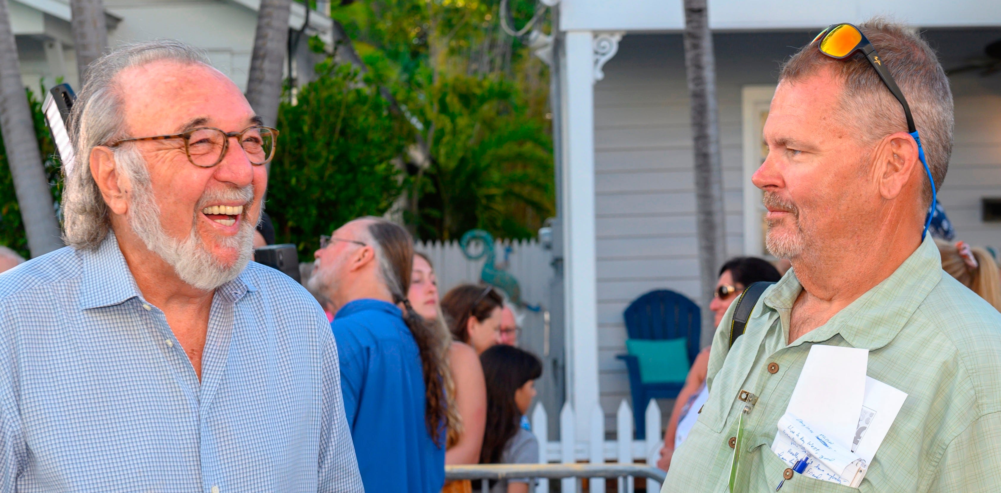 Hollywood producer Albert Brooks, left, shares a laugh with Above the Fold’s Ted Lund during the Key West premiere of Judy Blume’s Are you there, God? It’s me Margaret in 2023 / ROB O’NEAL, FKNB