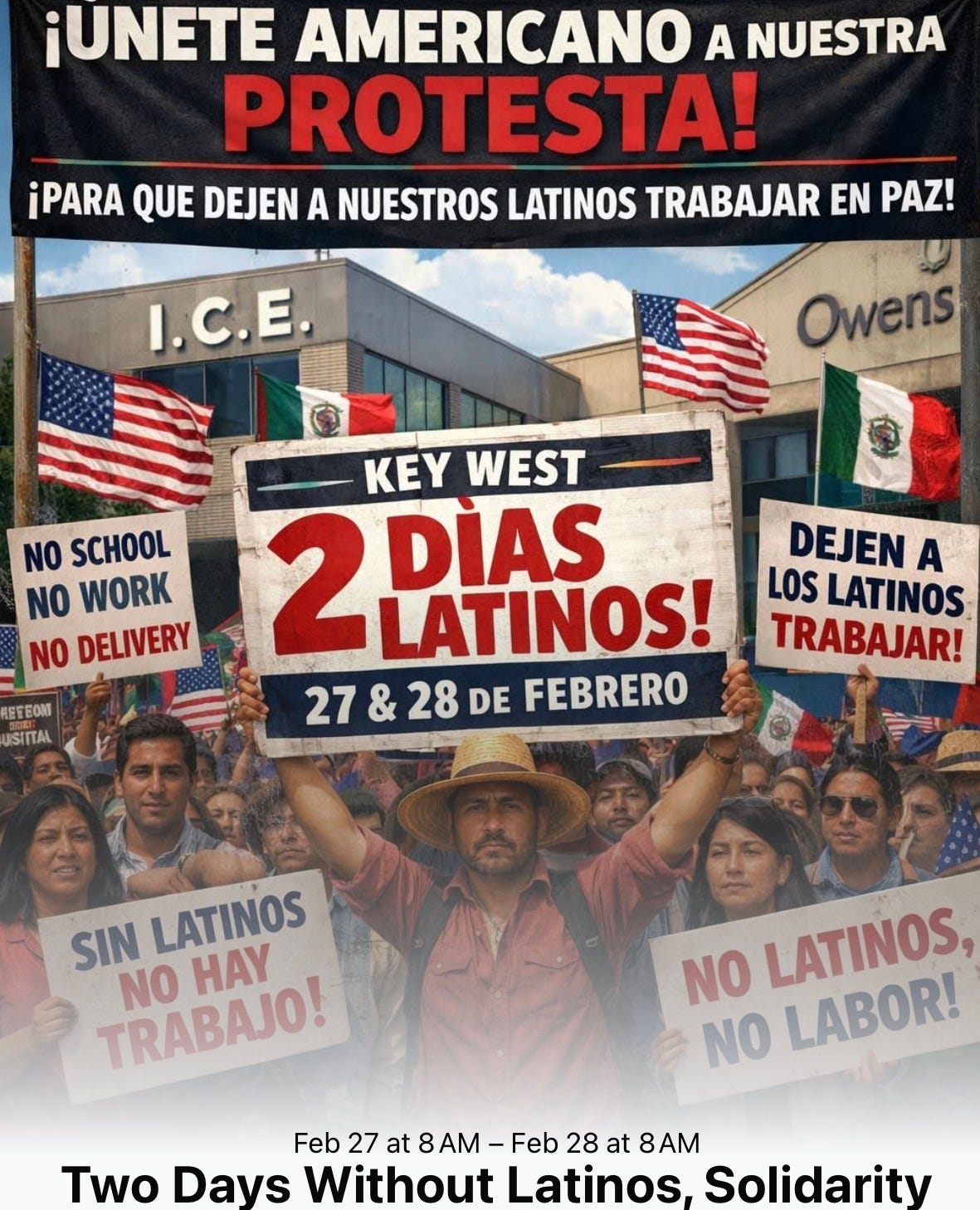 A statement released Monday by the Key West Immigrant Support Network urges members of the local immigrant community and supporters to participate in a peaceful work stoppage Friday and Saturday, Feb. 27–28, along with morning demonstrations outside the federal Homeland Security building at 2000 N. Roosevelt Blvd.
