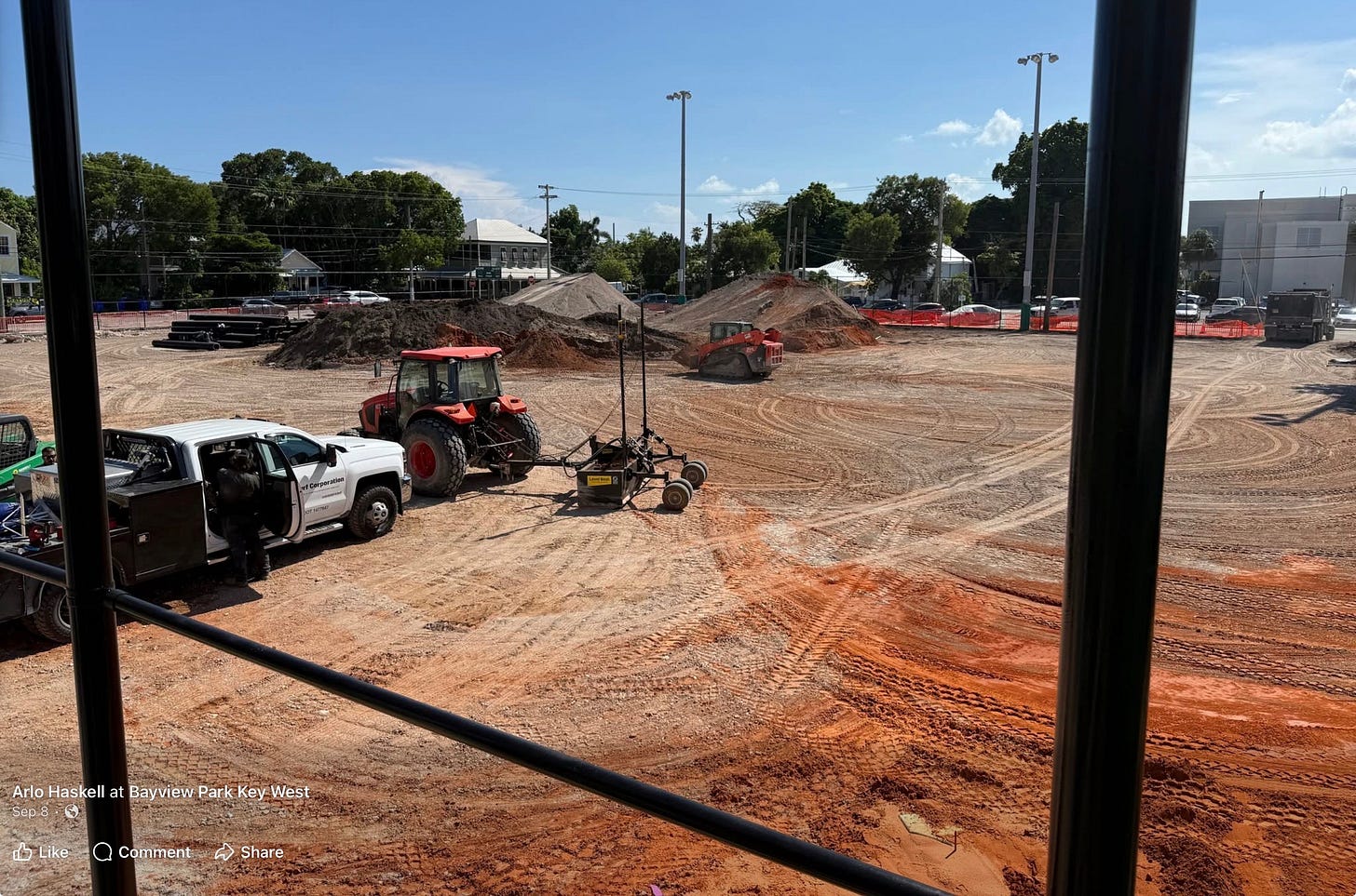 Workers from AstroTurf Corporation rip out one of the last large green spaces in Old Town to install fake grass at Bayview Park. / ARLO HASKELL, FACEBOOK