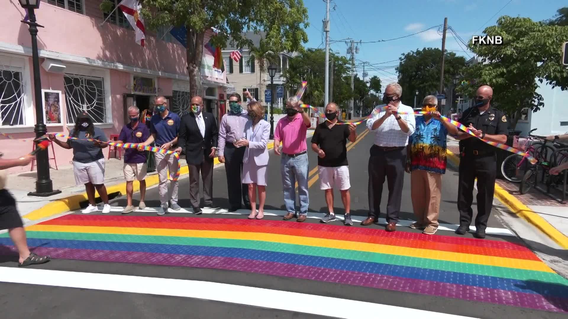 Former Key West Mayor Teri Johnston, along with the Key West City Commission, dedicate its rainbow crosswalk at the intersection of Duval and Petronia streets in 2020. The FDOT is threatening to remo…